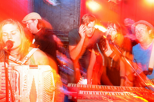 Library Voices — I had seen this group before in their band National Frost and it didn't take much convincing to bring me back. They have tons of collective energy and manage to stay away from being muddy despite having eleven members. They have a great mix of rhythm and fun melodies and someone complimented later saying "these guys make me happy and good music should do that." I even bought their CD! Definitely check them out if they hit your town or city as they seem to be touring constantly.